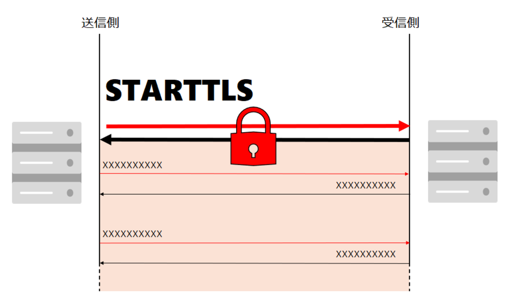 ESMTPは、通信を暗号化する「STARTTLS」に対応しています。これによって、メールが送られる途中で盗み見られるリスクを減らせます。
